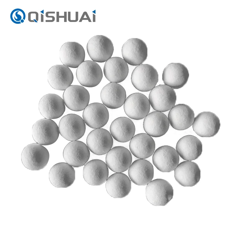 Alta qualitas globulorum alumina a Shandong Qishuai producta, omnes habent duritiem altissimam, valde bonam chemicam stabilitatem et resistentiam caloris altae (1600°C). Variae specificationes praesto sunt cum magnitudinibus particularibus ab 0,5mm usque ad 10mm vagantibus. Praecipuae applicationes includunt stridor et expolitio, tabellarius catalyst, adsorbent, materiam refractoriam summus temperatus etc.