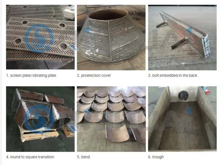 - Single volumen comprimens hastilia una-volumen comprimens spicula, tabula reparatione obductio glutino, scoria chutae, discos distributio, pascens lineros vibrans, velum linearium vibrans, ocellae hopperi, scapulae hopperi, et gerunt relucentes partes pro vecturae scoria aquae. Efficacissime abrasioni resistunt ex scoria, ore, ore et aliis materiis abrasi, quae tempus minuunt in instrumento ferramento et operationes productionis stabilis procurandi.